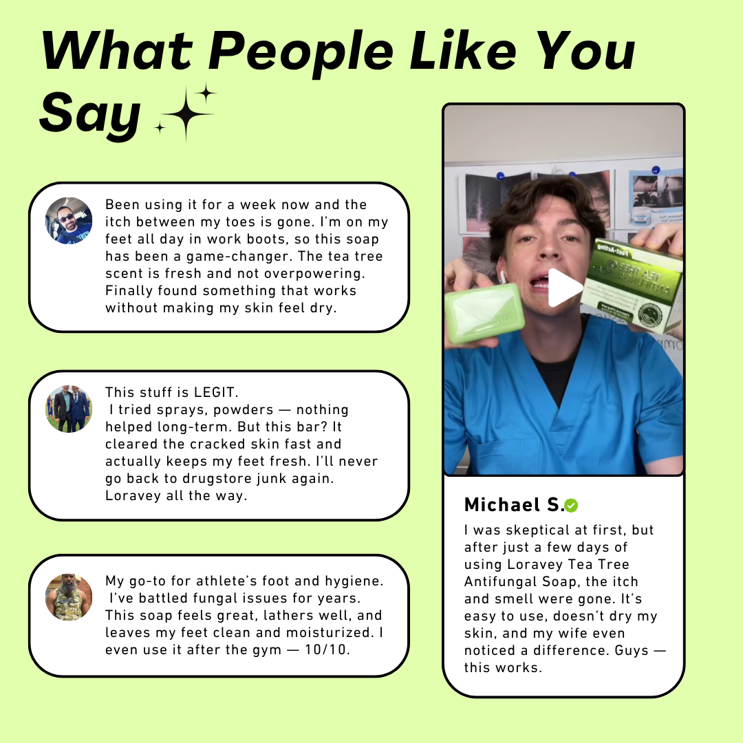 Most treatments only work on the surface. Our soap penetrates deep into skin layers where fungus hides, killing it completely rather than just suppressing symptoms.